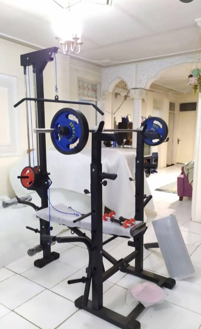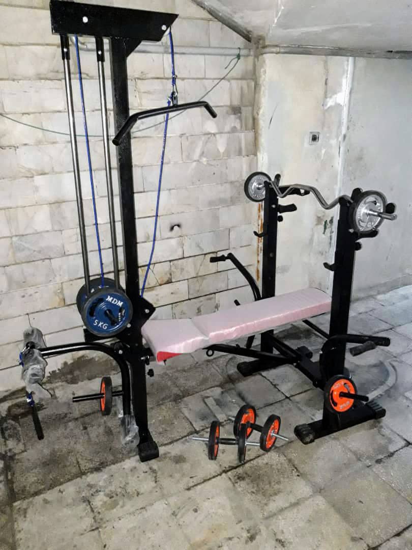 دستگاه بدنسازی ۵۲ کاره تاشو پک کامل همراه ست وزنه هالتر